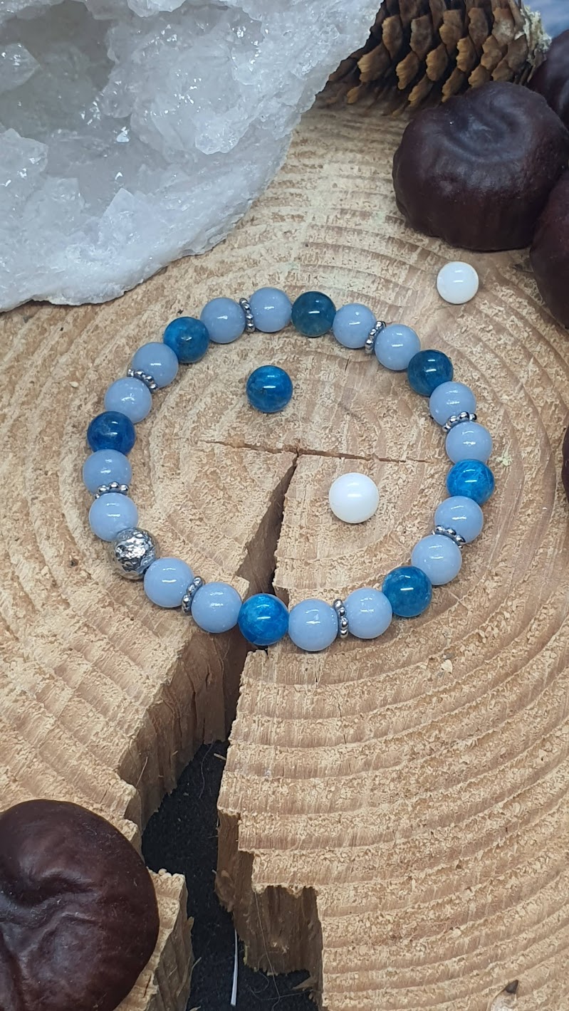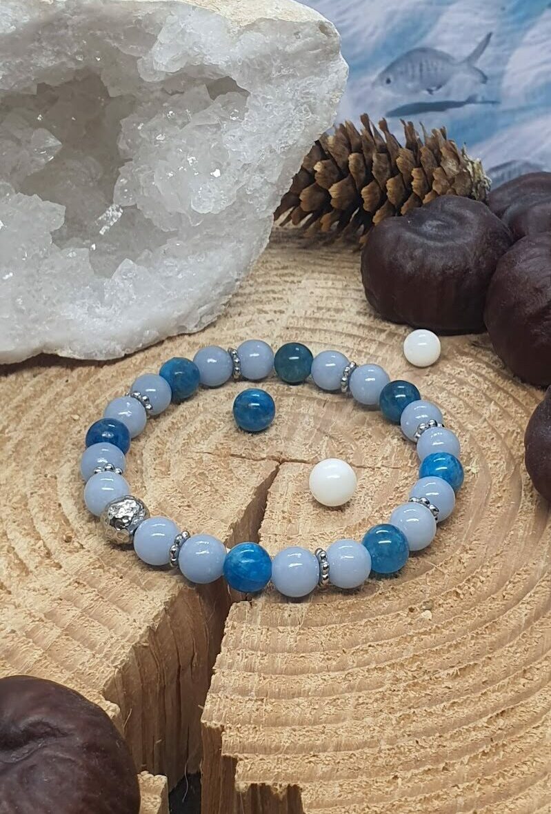 Bracelet apatite et angélite sur rondin de boisBracelet Apatite et Angélite (#1891)
