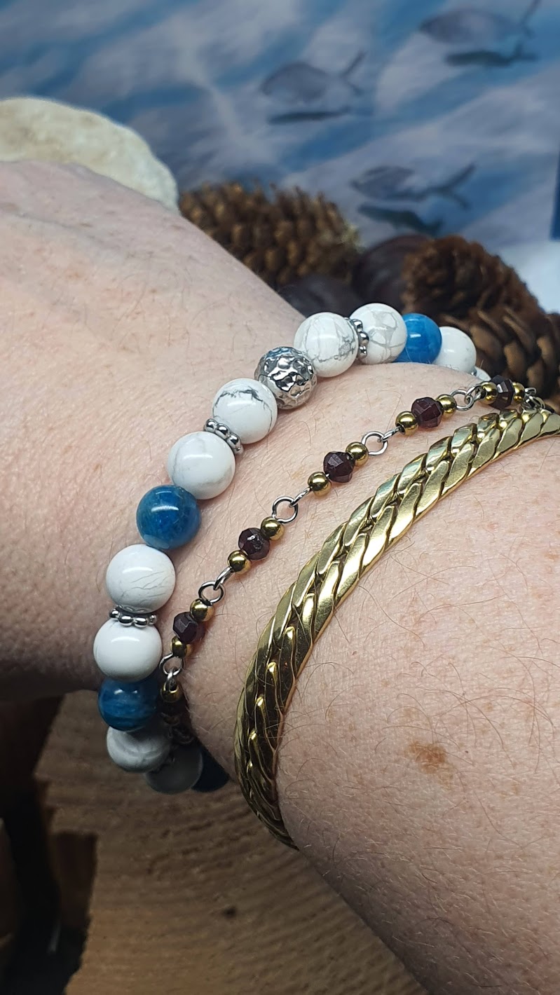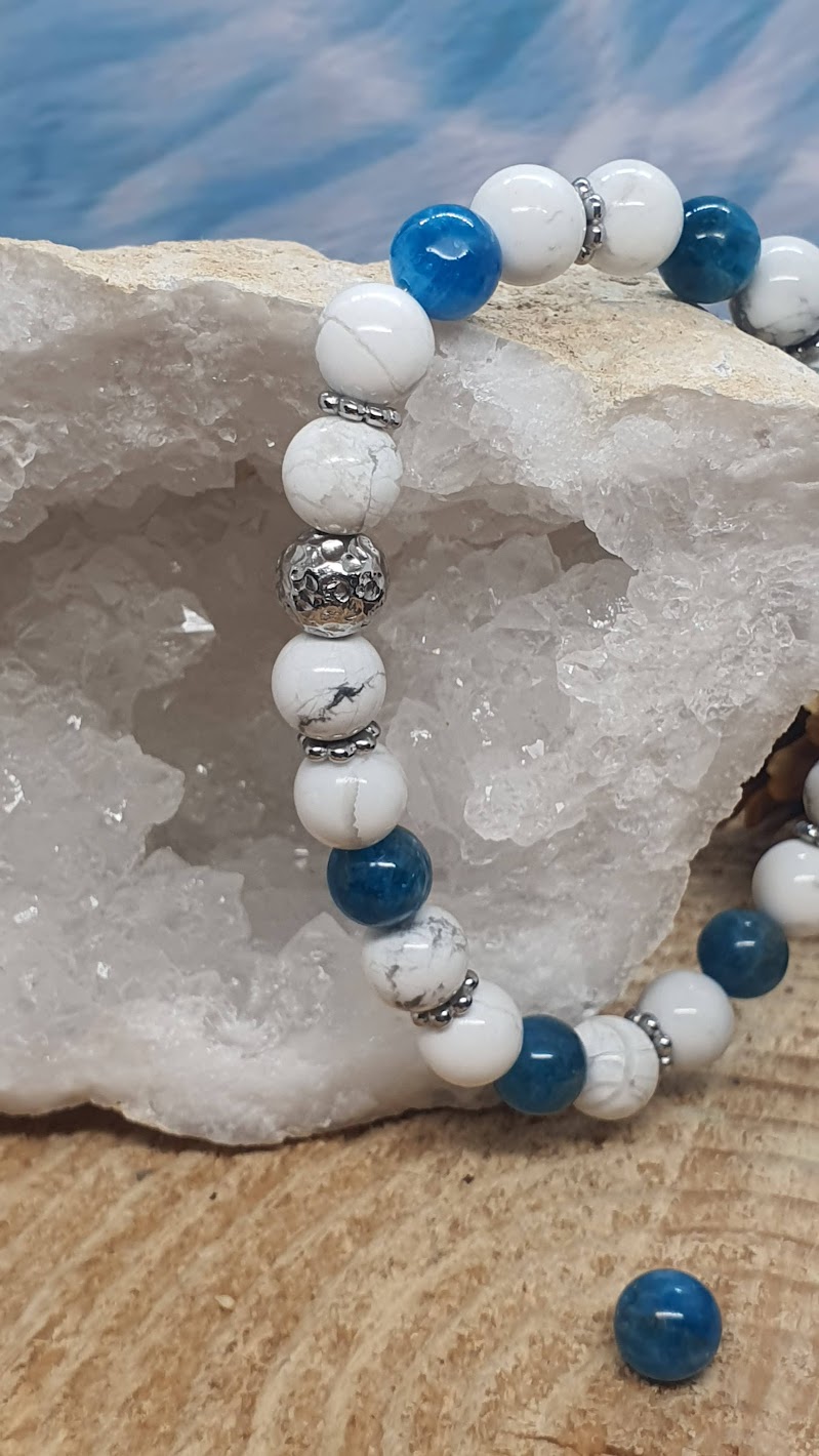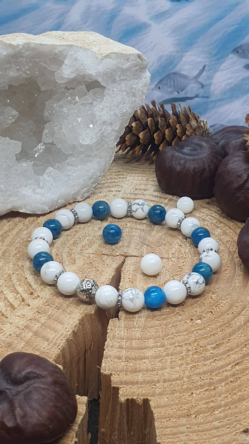 🌬️ Bracelet Apatite & Howlite – Voix Calme (Perles 8 mm)