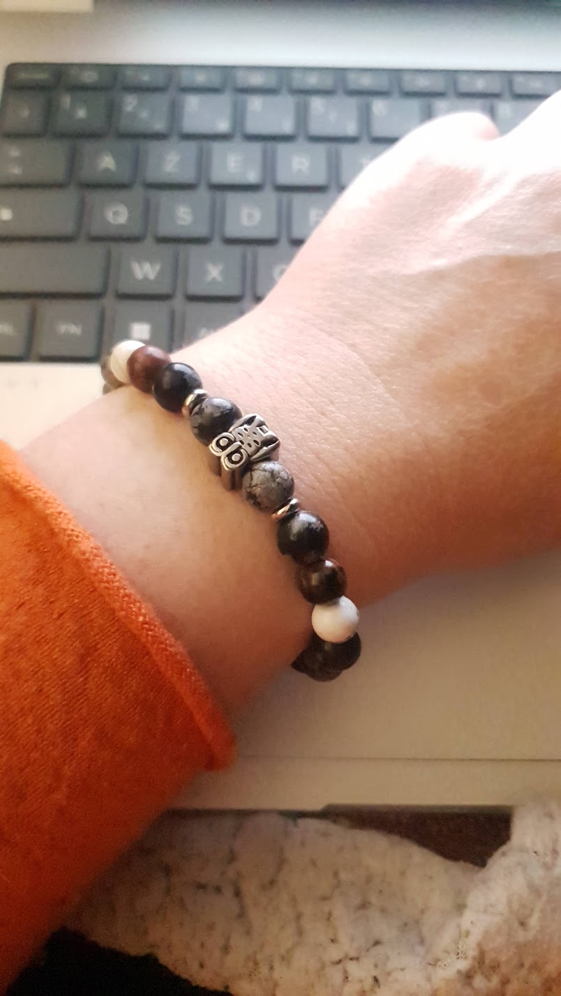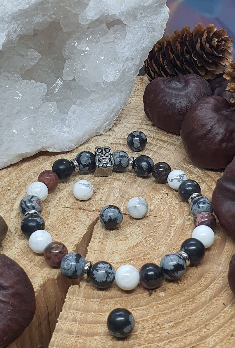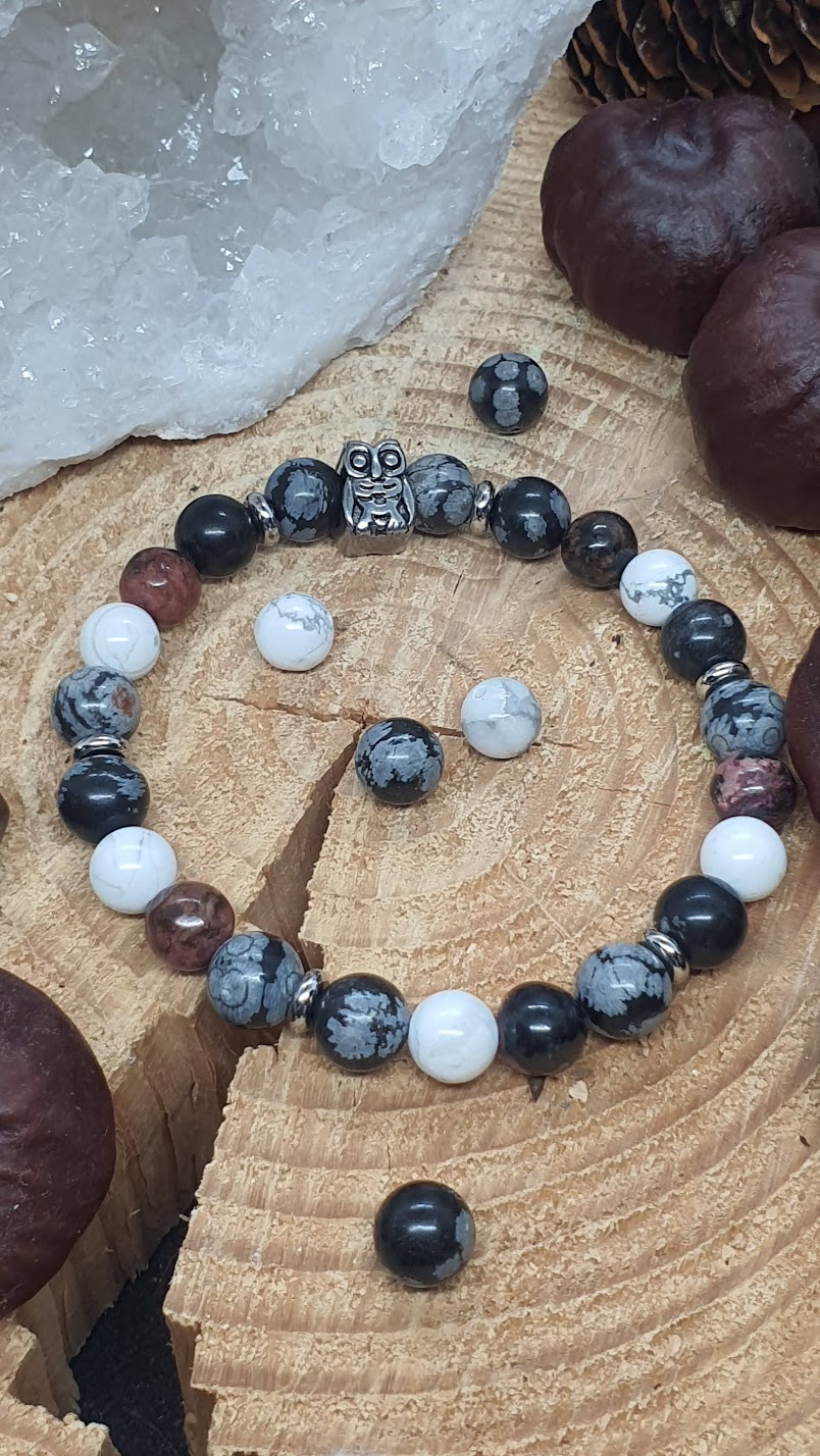 Bracelet rhodonite, obsidienne flocon de neige, howlite 8 mm